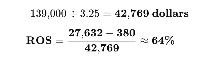 The underlying spend to earn those points was $42,769. Using the formula (cash price minus fees ÷ spend), their Return-on-Spend hit 64% - more than thirty times the return of their old 2 % cash-back setup, which would have required $1.38 million in spend for the same travel value.
