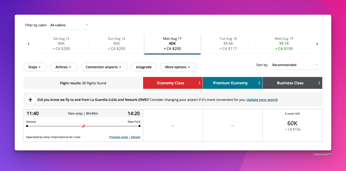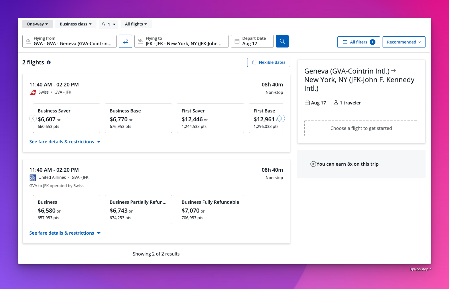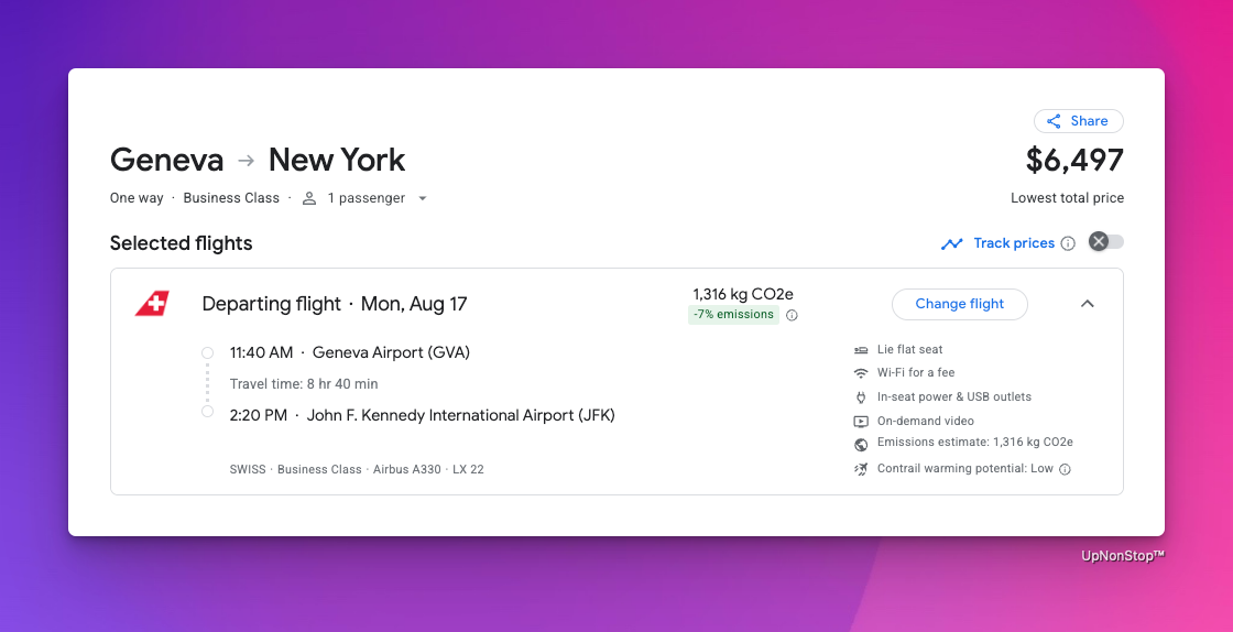 For the same Swiss business-class seat from Geneva to New York, your real options were: