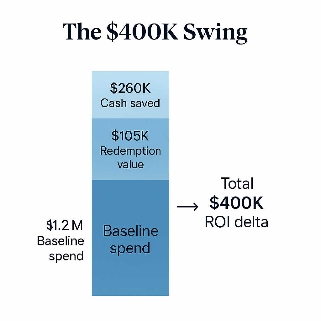 UpNonStop flipped the model. By reengineering how P-Club spend flows - optimizing card categories, transferring ownership of points back to the company, and converting loyalty liability into loyalty capital - the same trip generated over $400K in measurable ROI. What used to be a loss leader turned into a high-yield flywheel that funds its own rewards.